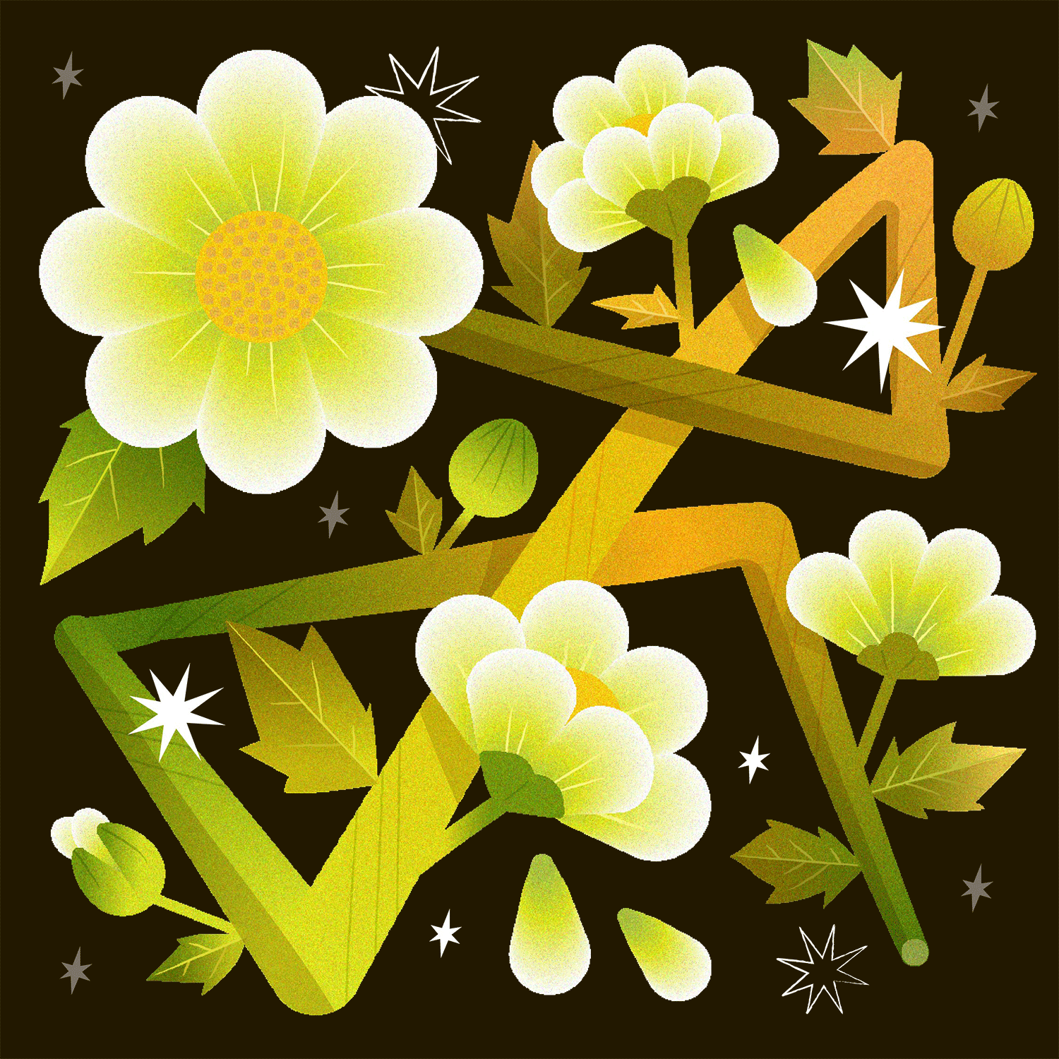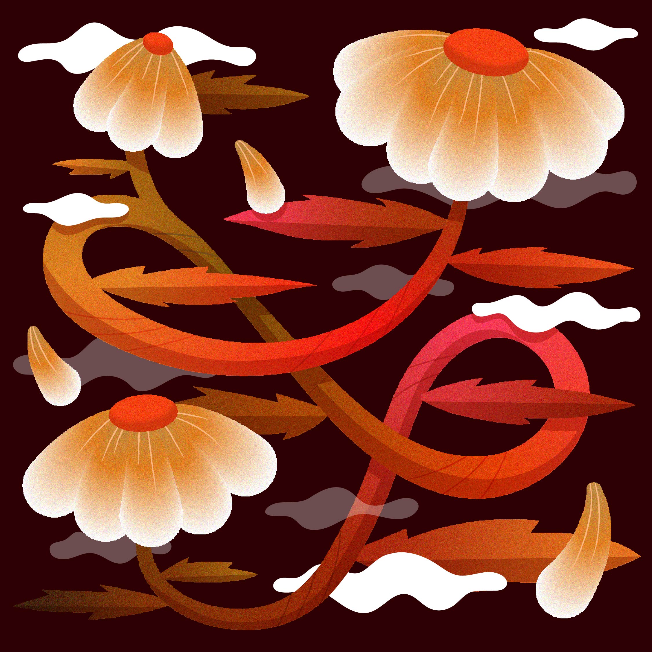 A series of floral illustrations and animations