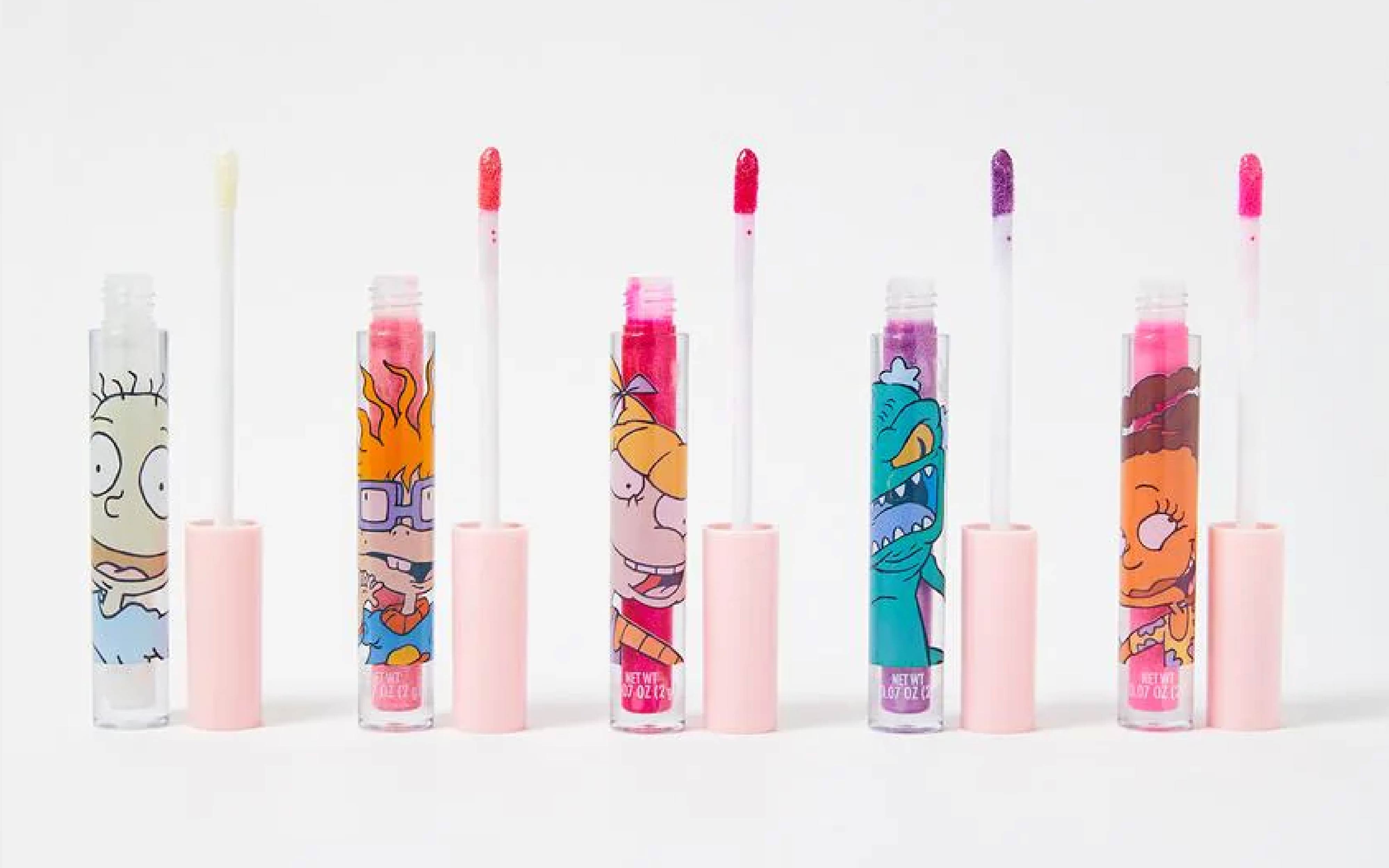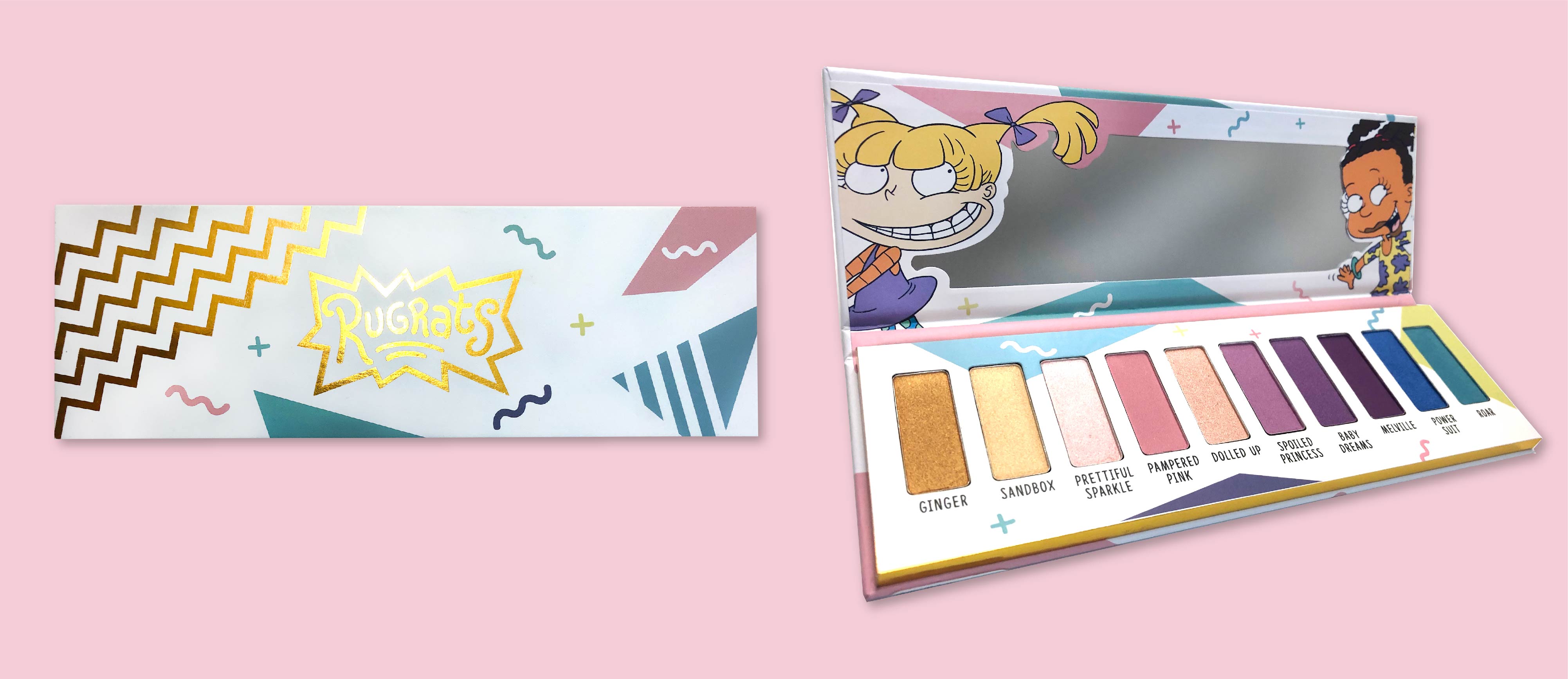 Nostalgic and trendy packaging design for a Nickelodeon Rugrats cosmetics capsule collection.