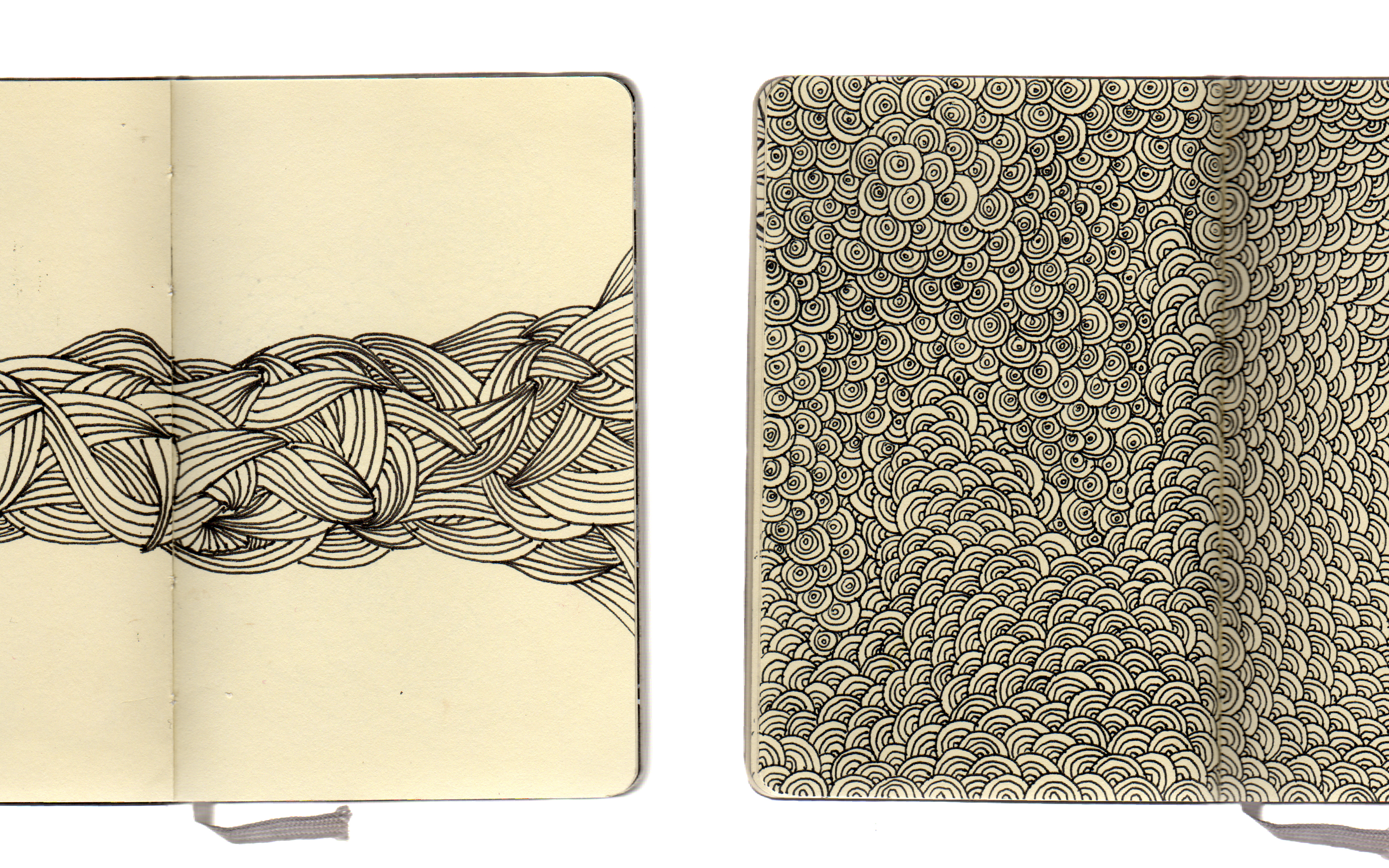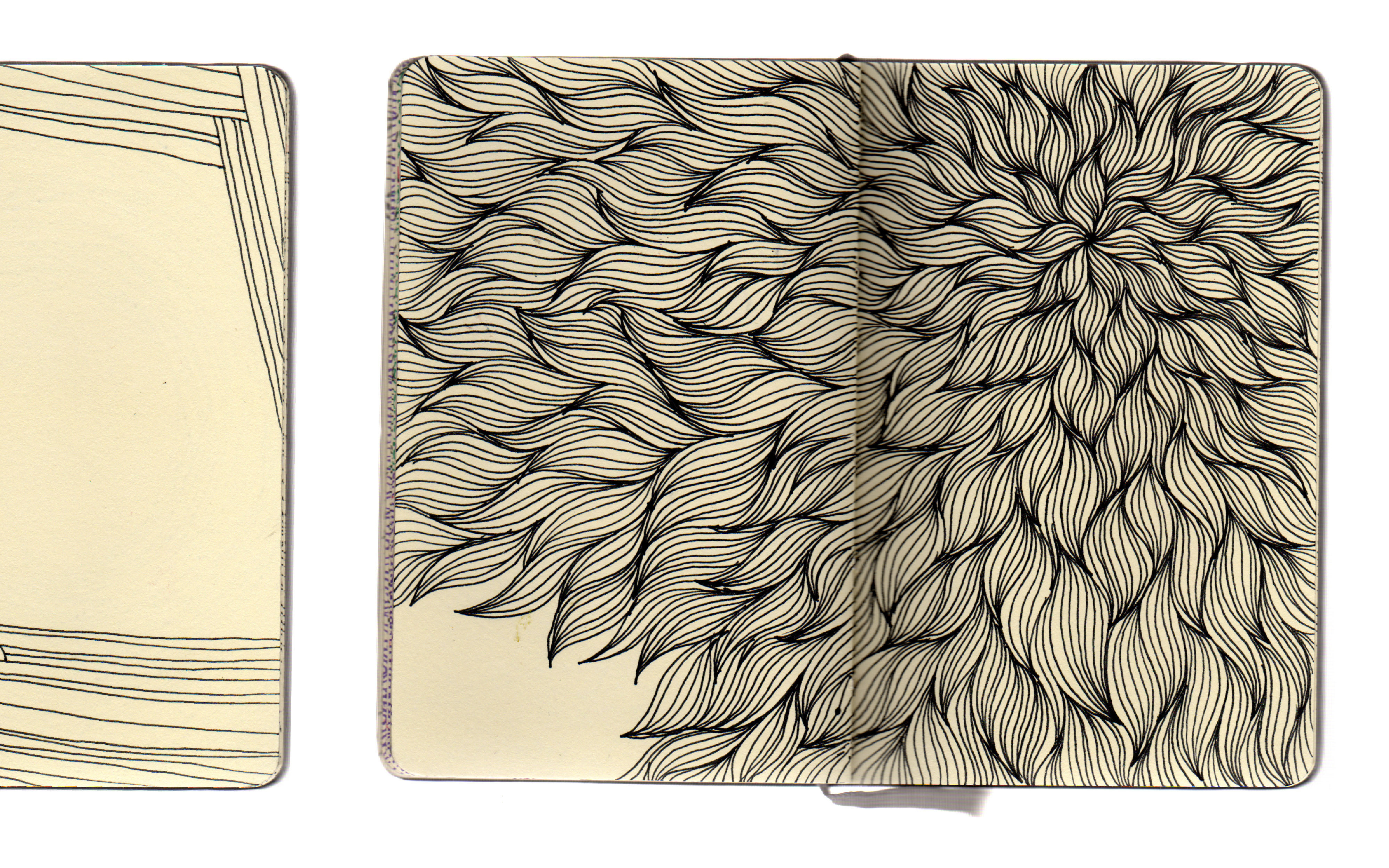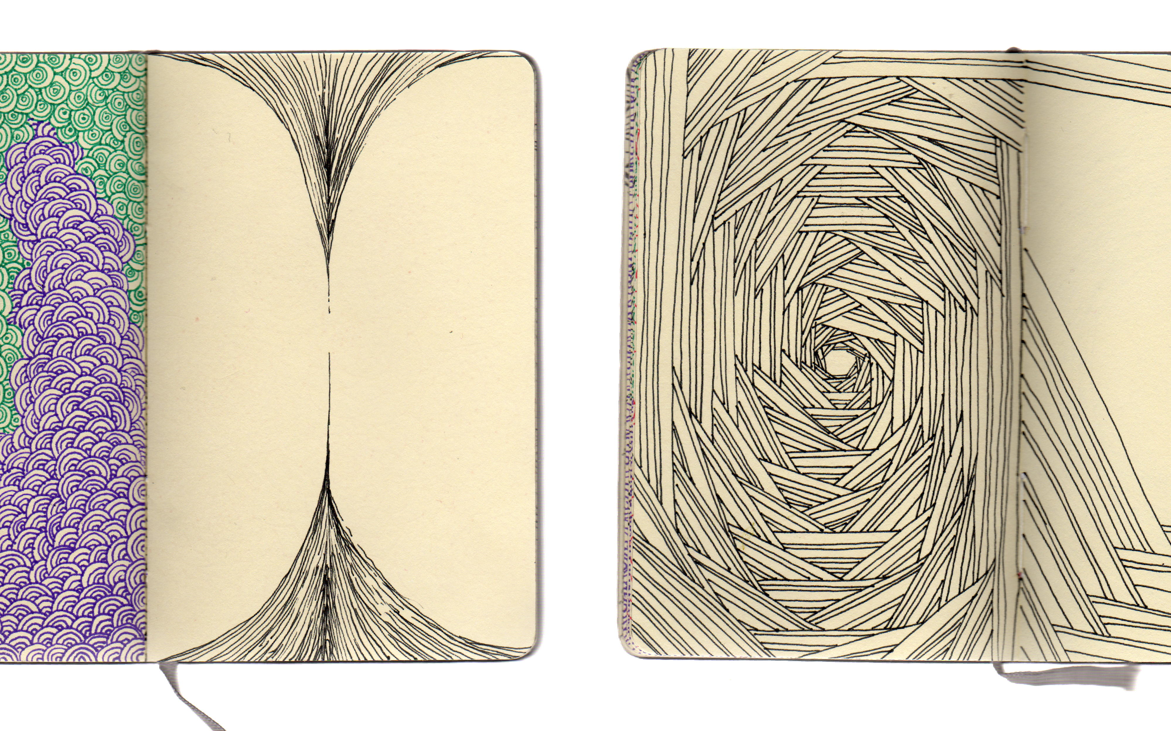 A completed sketchbook of meditative line drawings exploring shape, line, space, and texture.